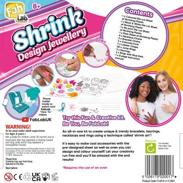 - An all-in-one kit to create unique & trendy bracelets, keyrings, necklaces and rings using a technique called ‘shrink art’!It’s easy to make cool accessories with the pre-designed sheet as well as ones you can design and colour yourself! Let your creativity run free and you’ll be amazed with the end results!