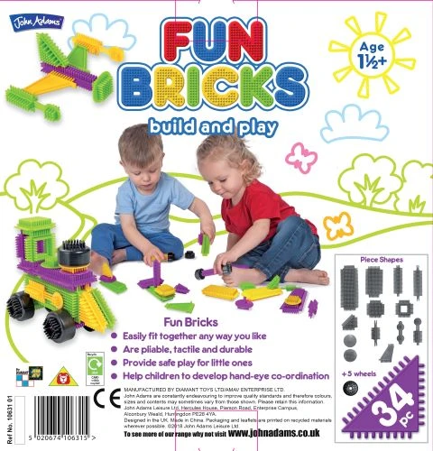 Fun Bricks is a new range of building blocks for children aged 1 and a half and up. These sturdy bricks in bright primary colours are perfect for little hands and big imaginations.