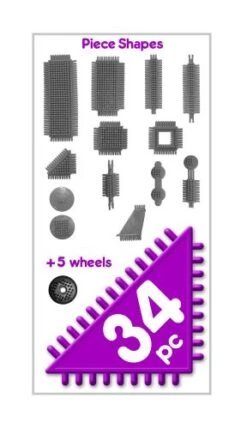 Includes 34 pieces to make a range of different models, including a car and a jet plane.