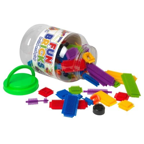 Fun Bricks is a range of building blocks for children aged 1 and a half and up. They help young children develop hand-eye co-ordination. These sturdy bricks in bright primary colours are perfect for little hands and big imaginations they easily fit together any way you like. A bumper tub to store the 100 pieces Fun Bricks, which includes a range of different building blocks, with colourful characters.