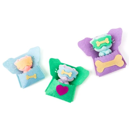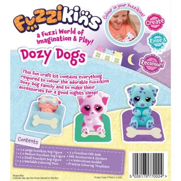 This Dozy Dogs family is so cute, colourful and fuzzy! Decorate their sleeping bags and costumes with stickers.