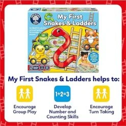 Orchard Toys My First Snakes and Ladders Game, big chunky board, giant pieces perfect for little hands, first game for children age 3-6, For 2-4 Players