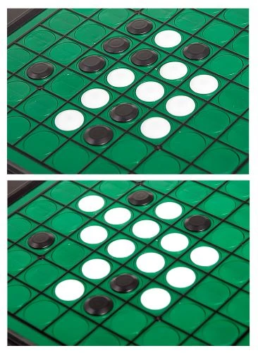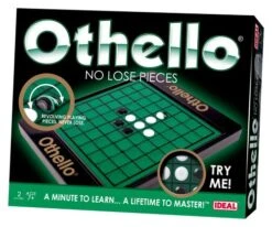 Trap and capture your opponent by placing your disks on the board. “Sandwich” at least one of your opponent’s pieces to turn their disk to your colour….but look out, your opponent will do the same to you. The lead can change with the flip of a disk in this classic fast-paced strategy game.