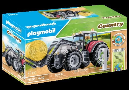 The cool large tractor from PLAYMOBIL has everything nature-loving children need to support the farmerβs family in the field work. With the modern tractor, the heavy hay bales can be lifted and transported effortlessly, and thanks to the electric drive, itβs also environmentally friendly. After work, the e-charging station can be used to βrefuelβ the vehicle. Makes a great birthday, holiday or any-day treat for creative kids who love agriculture. The large organic farm from PLAYMOBIL invites children aged 4 and up to discover a new side of country life. The richly detailed sets with lovely characters inspire kids to imaginative roleplay adventures and encourage a mindful use of our natural resources.