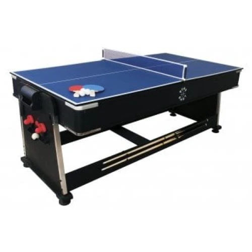 A top level robust 4-in-1 7ft Multi Games table with a rotational design which allows you to change easily between pool, air hockey and table tennis, as well as a dining table option which can also be used for many other activities.
