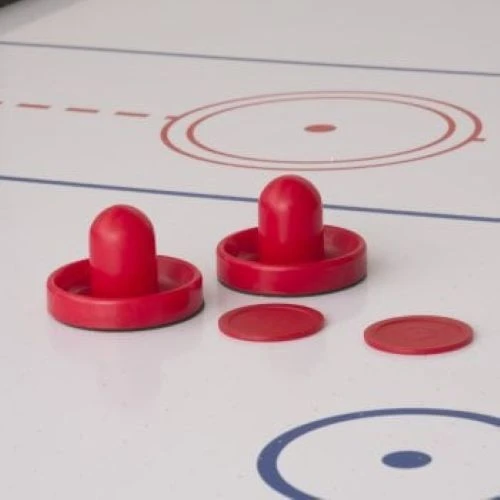 The Air Hockey Table comes complete with two pushers and two pucks. Each table has a handy storage compartment at the end of the table for them.