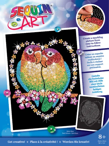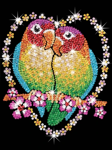 Brighten your grey days with this vibrant Sequin Art Love Birds craft project from the Blue collection.