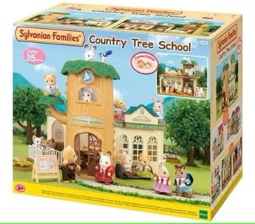 The Country Tree School is such a fun school! Whilst there is a classroom which comes furnished for lessons for up to 6 Sylvanian children, complete with 6 seats and desks, the teacherβs desk and whiteboard, there is also a tree to climb in breaktime!
