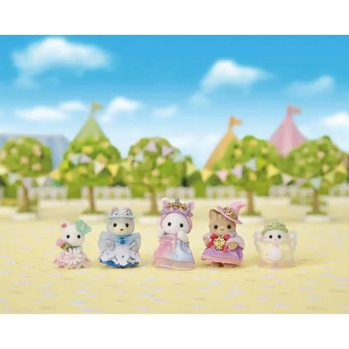 Royal Princess Set is a set of baby figures, all dressed in lovely princess costumes. Features lots of different kinds of princesses, like Husky baby as a Snow Princess, or Snow Rabbit baby as a Unicorn Princess.Β Also includes tiaras and other themed accessories.