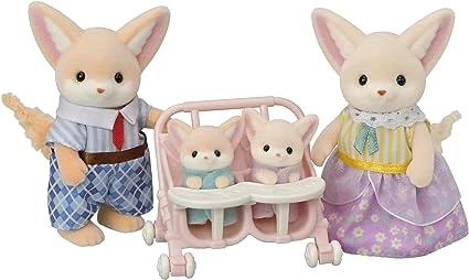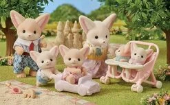 Introducing Fennec Fox father Ronald, mother Sharon, and their cradled baby children, Allie and Kaya. Set featuring the Fennec Fox family, known far and wide for their big, pointy ears. Includes Fennec Fox father, mother and cradled babies, along with a twin-sized pushchair.