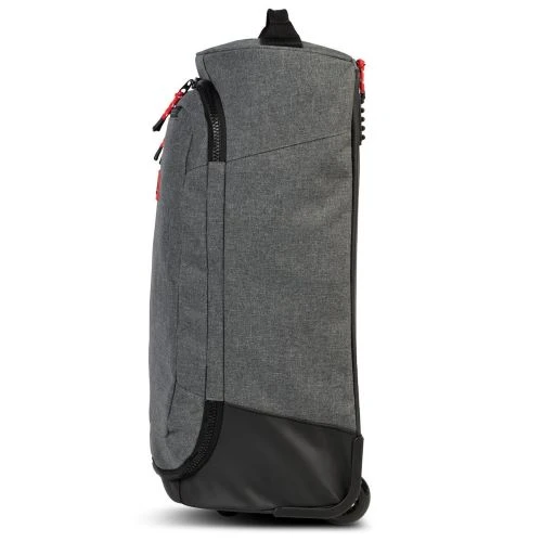 The Spy trolley in size M is a real space miracle. The soft but robust dark grey fabric offers plenty of flexibility, while the sturdy black plastic zip closes the cover securely. It combines sporty elegance with functionality. It is the perfect choice for players who travel a lot and want to transport their equipment safely. The wheels are smooth-running, and the extendable handle makes an easy transport. When the handle is no longer needed, it can be pushed together and disappears into the rear pocket, which can be closed with a zip. The side and base sections are covered with a matt black plastic material to protect them from moisture and dirt. The stable side section ensures a secure stand.