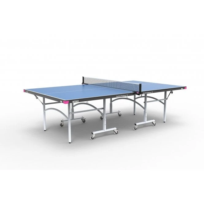 As the top selling table in the British Isles, the Easifold offers a 19mm playing top, good bounce and an 8 wheel system with economic storage and lighter rollaway benefits. This table is ideal for schools and for home use. It divides into 2 halves which makes the movement and storage simple and easy. It includes a Butterfly Clip net and post set, 2 bats and 3 balls.