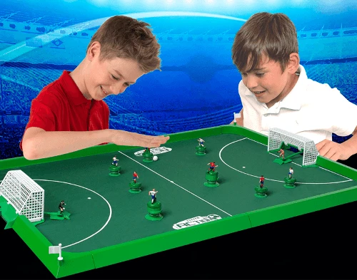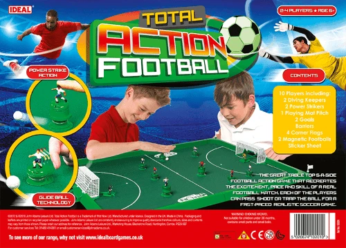The fast paced realistic 5 a side table-top football game with magnetic action so each player can pass, shoot or trap the ball. Features power-strike action, glide-ball easy player slide technology and diving goalie!